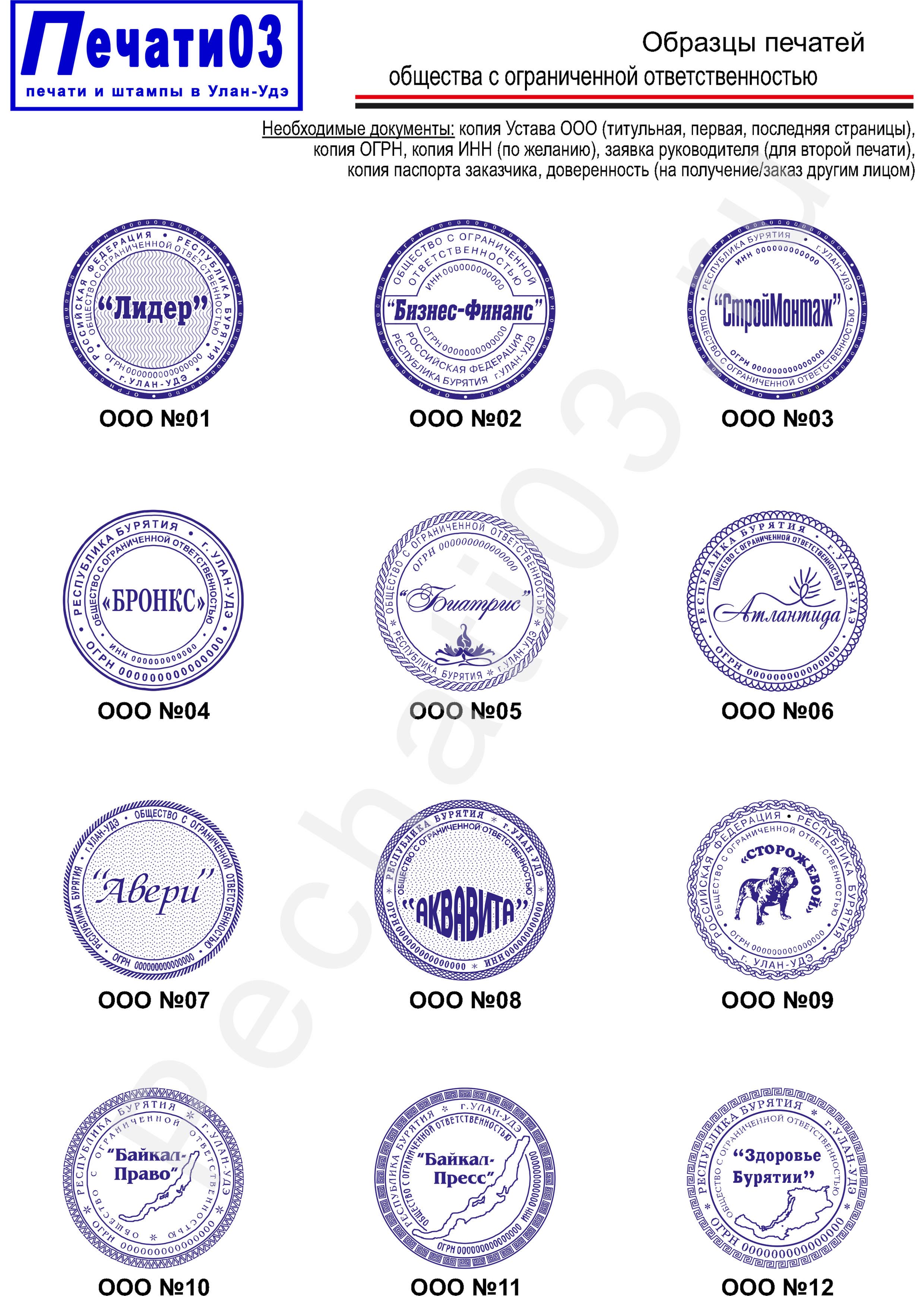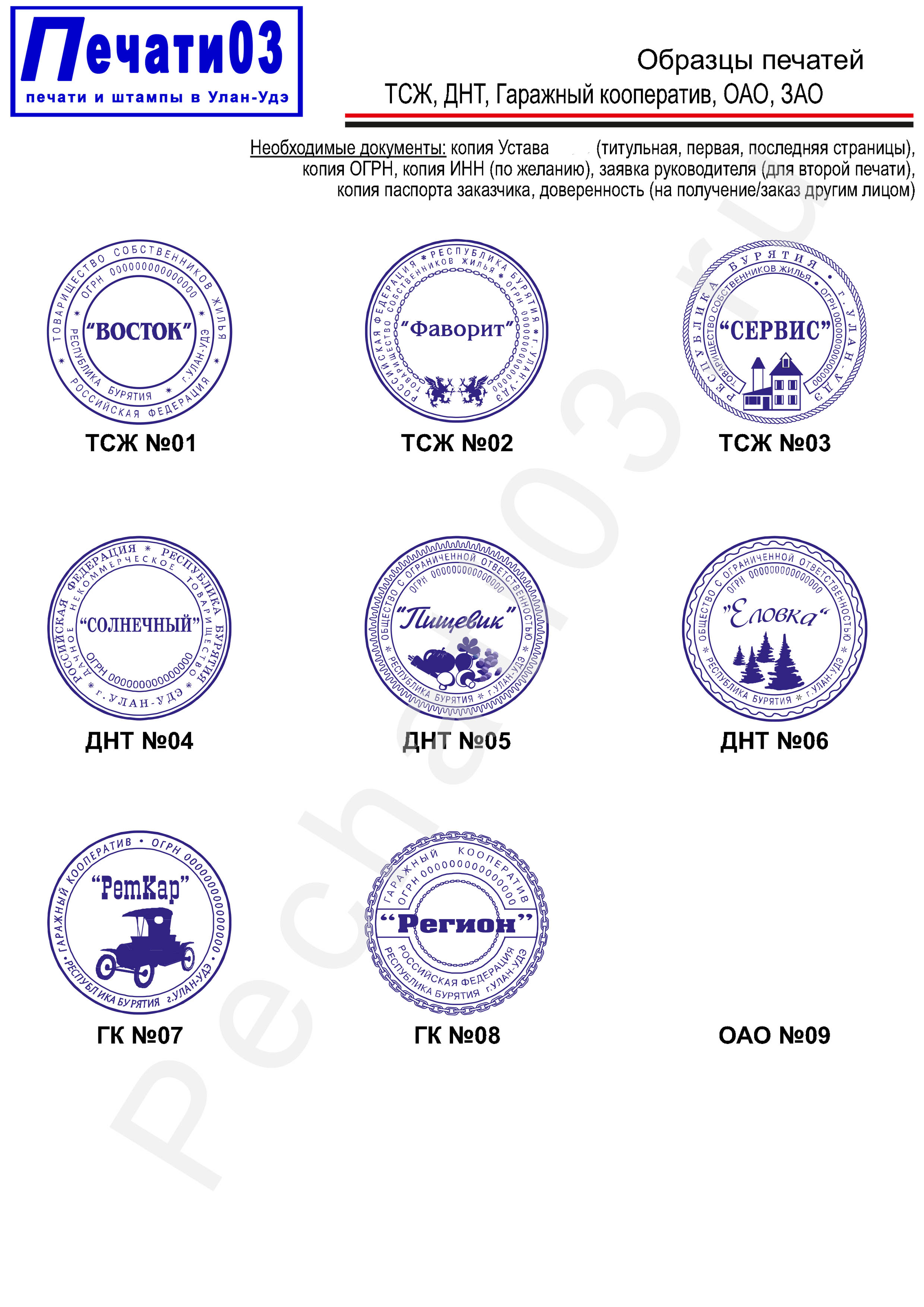 8. Выбрать саму печать из каталога (с автоматической, ручной или карманной оснасткой и др).